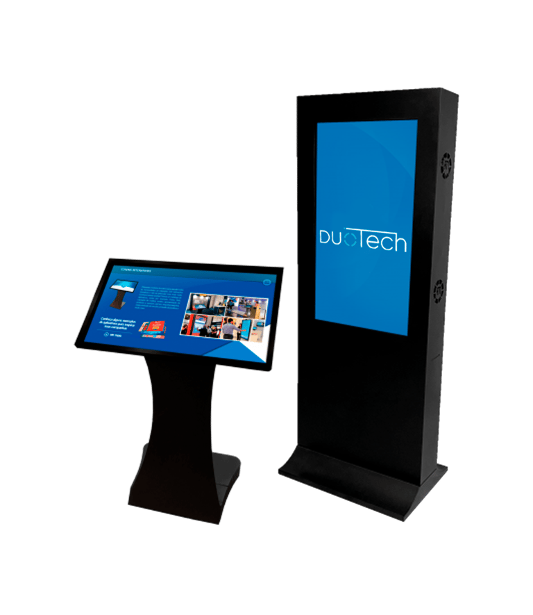Entregamos soluções ideais para autoatendimento, sinalização digital ou serviços ao cidadão. Nossos totens contam com hardware robusto, design moderno e possibilidade de software customizado. A Duotech cuida de toda a instalação, manutenção e suporte, sendo uma solução prática para empresas, eventos, hospitais e prefeituras.